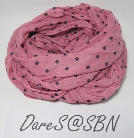 7.ผ้าพันคอ H&M ลายจุด สีชมพูจุดดำ ขนาด 48*200 ซ.ม. SALE 590 บาท
