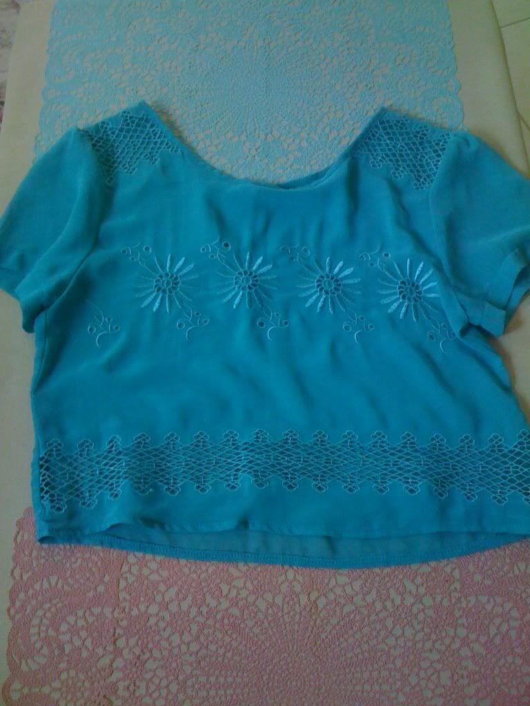 ต่อมา hn sz 34 เปน crop t-shirt ลายดอกสีฟ้าค่ะตรงแขนพับทบขึ้นน่ารักค่ะใหม่ค่ะเล็กไปเลยขายดีกว่า ขาย SoLdรวมส่งค่ะ