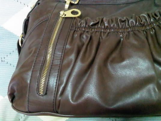 ใบนี้สีจริงรูปที่3 น้ำตาลเข้มออกแดง ด้านหน้ามี ช่องเล็กกระดุมแม่เหล็ก ซิปสองข้างใส่ของได้ มีช่องด้านช้างทั้งสองข้าง