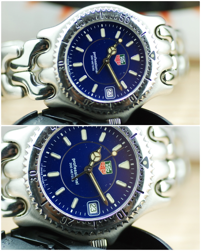 Tag Heuer ก้างปลา หน้าปัดน้ำเงินวงแหวน 3ชั้น โฉมสุดท้าย ตัวเรือน เงาสลับด้าน เรียบ หรู ขนาด Man size สวย