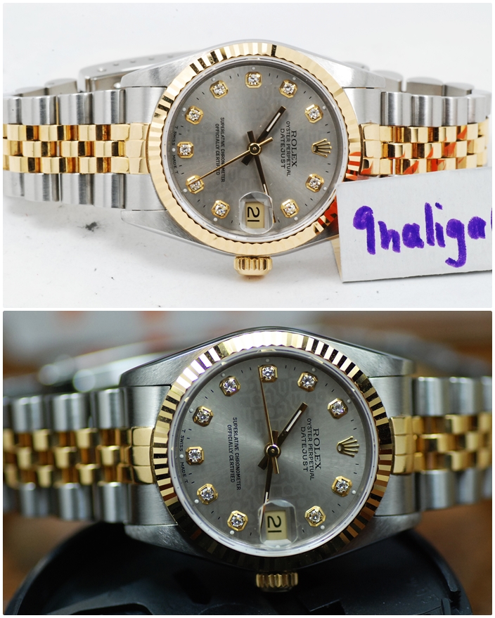 Rolex Oyster Perpetual Datejust 2กษัตริย์ หน้าปัดมุกขาวเพชรโฉมใหม่ สายเต้าหู้ตัน ขนาด Lady size