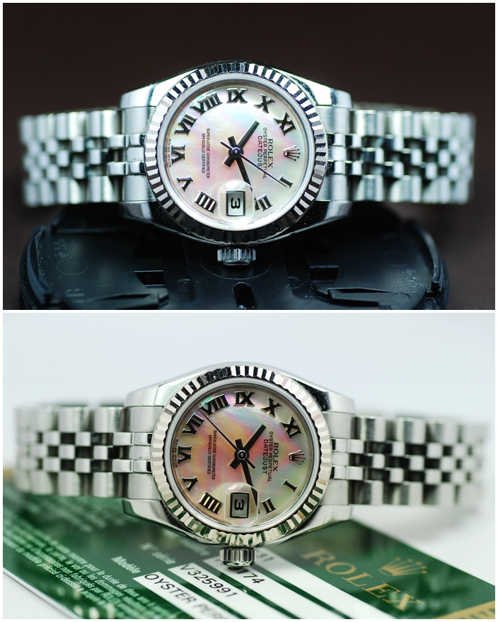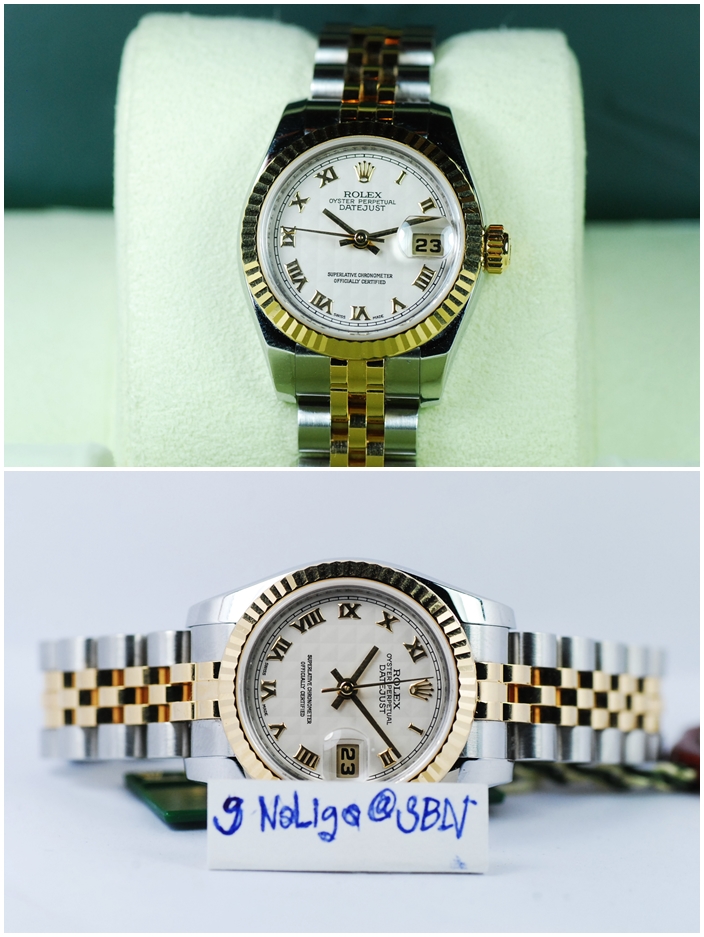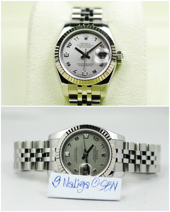 Rolex Oyster Perpetual Datejust หน้าปัดขาวโรมัน สายเต้าหู้ตัน โฉมใหม่ สลักขอบ Serie ขนาด Lady size