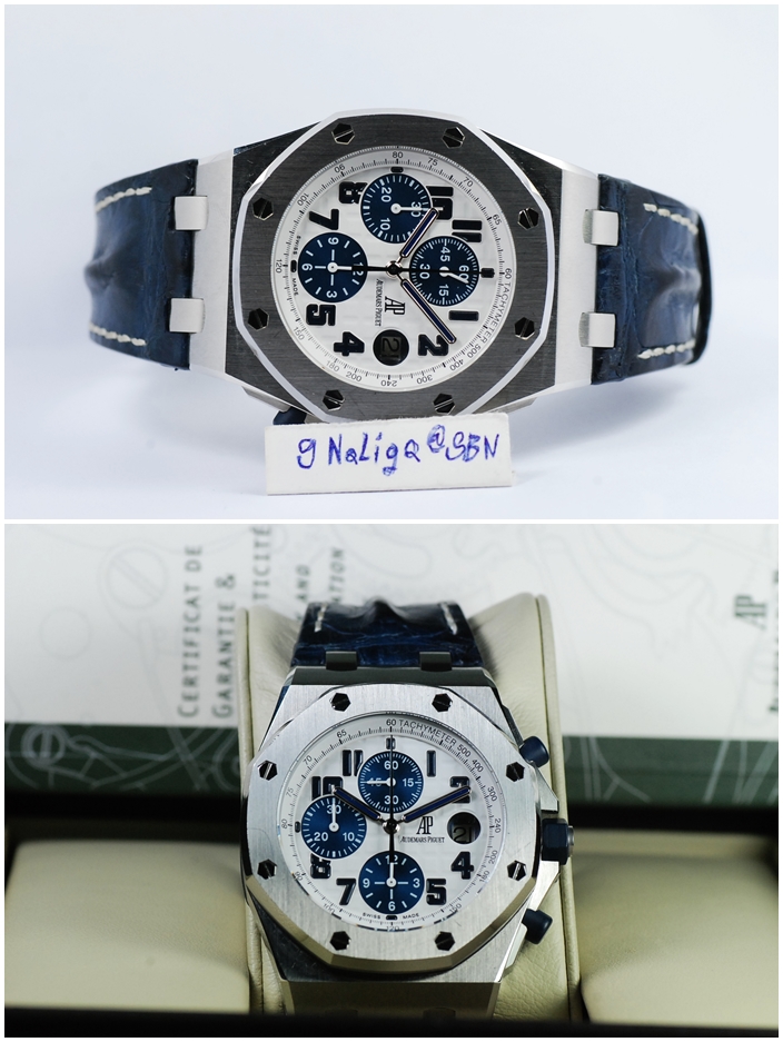 Audermars Piguet Royal Oak Offshore Navy Blue สุดยอดความสวยดุ หน้าปัดขาวตัวเลขเข้ม สายน้ำเงิน สภาพสวยมาก ขนาด 42x55มิล สวยครับ กล่องใบครบ Serie G