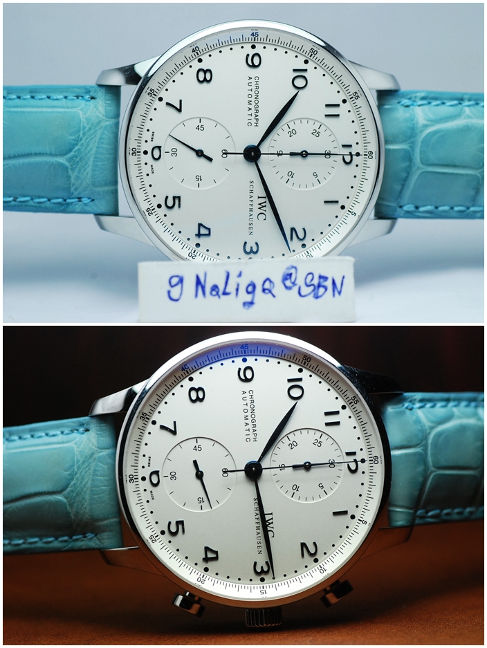IWC Protuguese หน้าปัดขาว เข็ม Blue Steel เรือน Steel สายหนังสีฟ้า กล่องใบครบ น่าเก็บ มากนะครับ สวยขนาด Man size