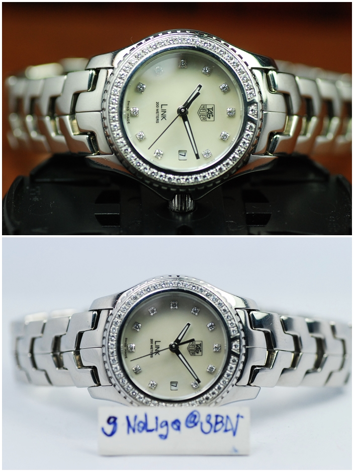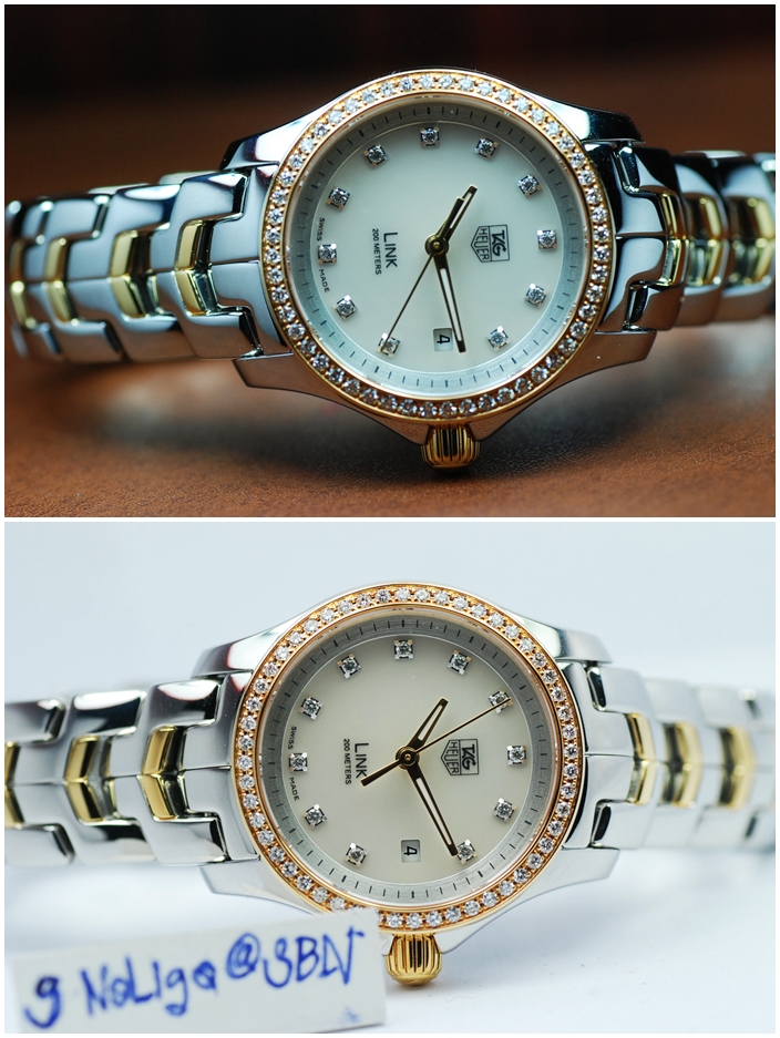 Tag Heuer New Link หน้ามักขาวเพชร ขอบเรียบ โฉมใหม่ ตัวเรือนเงาล้วน สวยหรู ขนาด Lady size[/TD]
