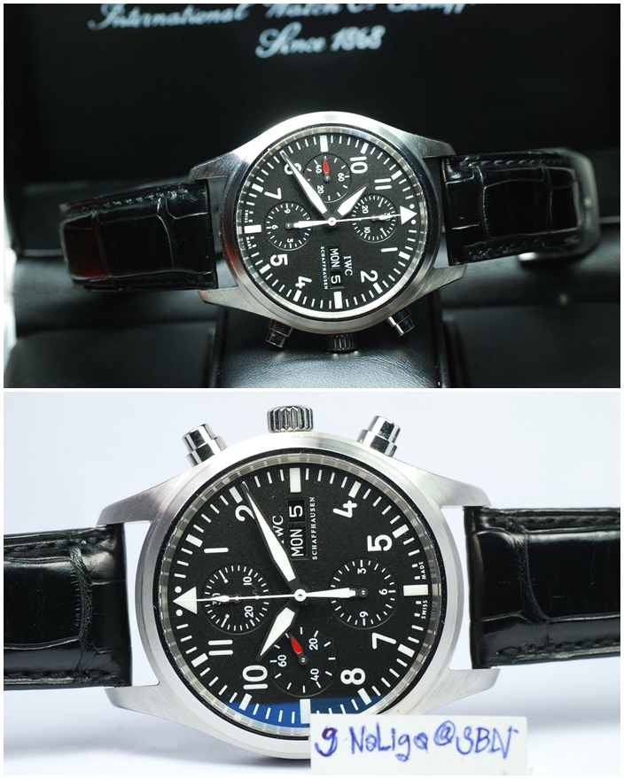IWC 3717 Pilot Chronograph Automatic หน้าปัดดำ สายหนังสภาพใหม่มาก ตัวเรือนแจ๋ม กล่องใบครบ น่าเก็บ สะสมเป็นอย่างยิ่งครับ