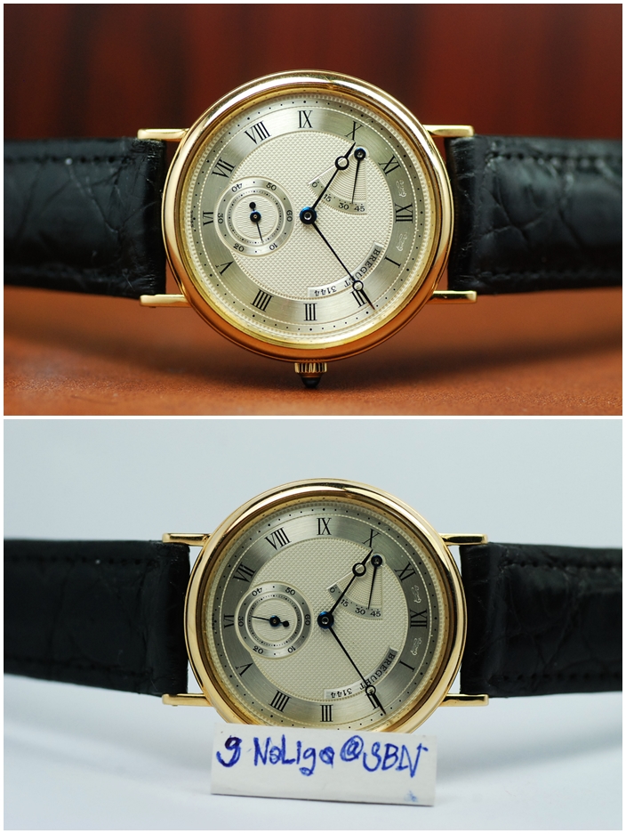 Breguet Yellow Gold เรือนทอง หน้าปัดจีลองเช่ เข็ม Blue Steel Power Reserve สุดสวยหรู Claasic สายหนัง สวย