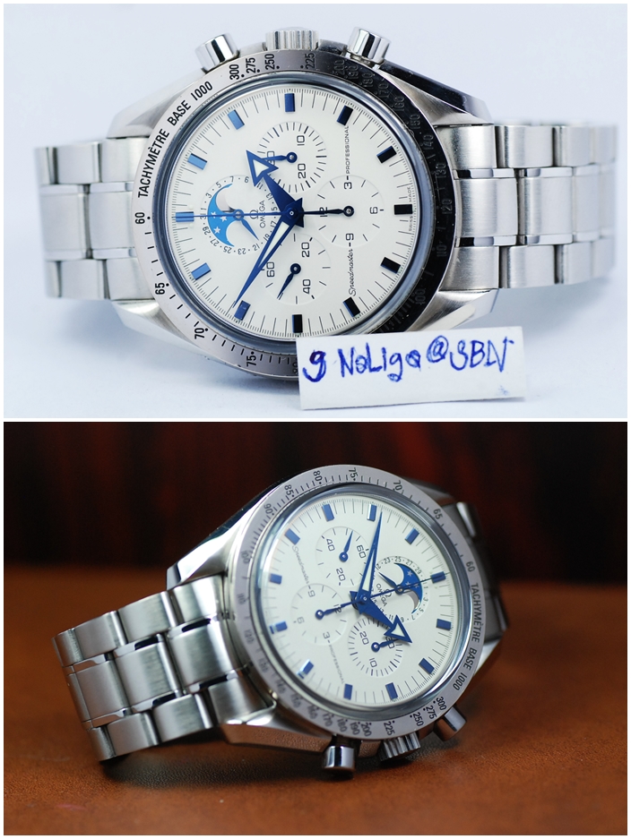 Omega Speedmaster Moonphase 1866 หน้าปัดขาวเข็ม Blue Steel ไขลาน ขอบ White Gold ทองคำขาว รุ่นน่าเก็บสวยมาก