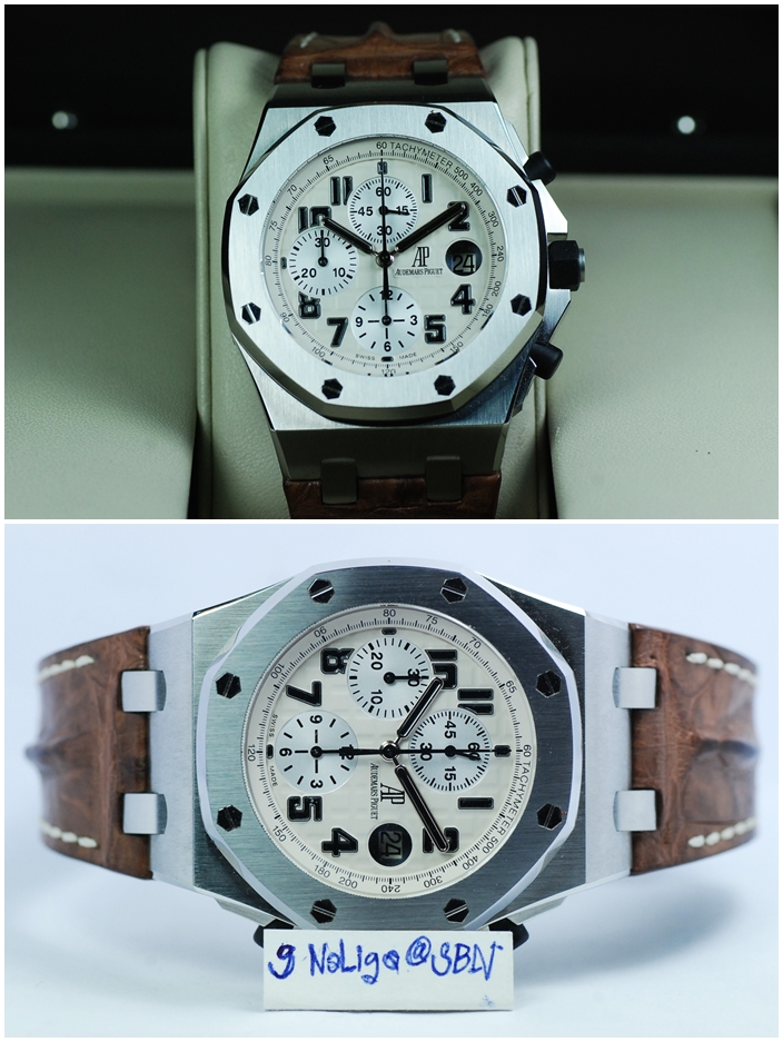 Audemars Piguet (AP) Royal Oak Off-Shore Safari หน้าปัดขาวเลขดำ สายน้ำตาล สภาพสวย Serie G กล่องใบครบ ใหม่มากๆ ปี 2009