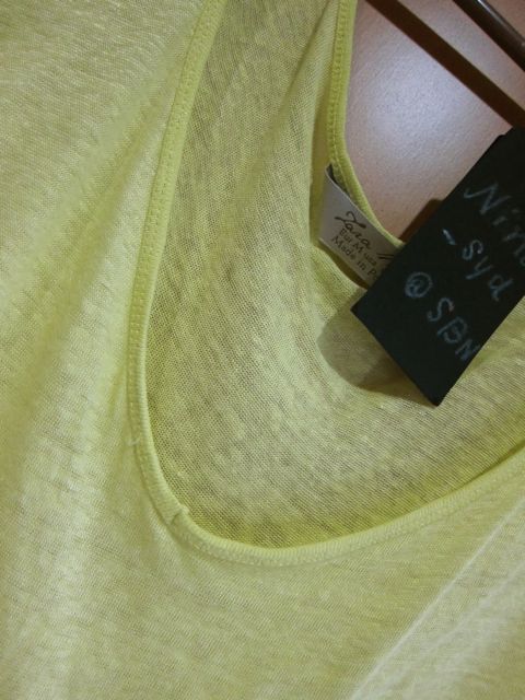Zara สีเหลืองสดใส เป็นผ้าผสมลินินนิดๆ แต่รีดง่ายมาก ใส่สบาย สีสวยเชียว ใส่ไม่กี่ทีจ้ะ ตามประสาคนชอบเปลี่ยนบ่อยๆ เอาไปเลย 490 baht