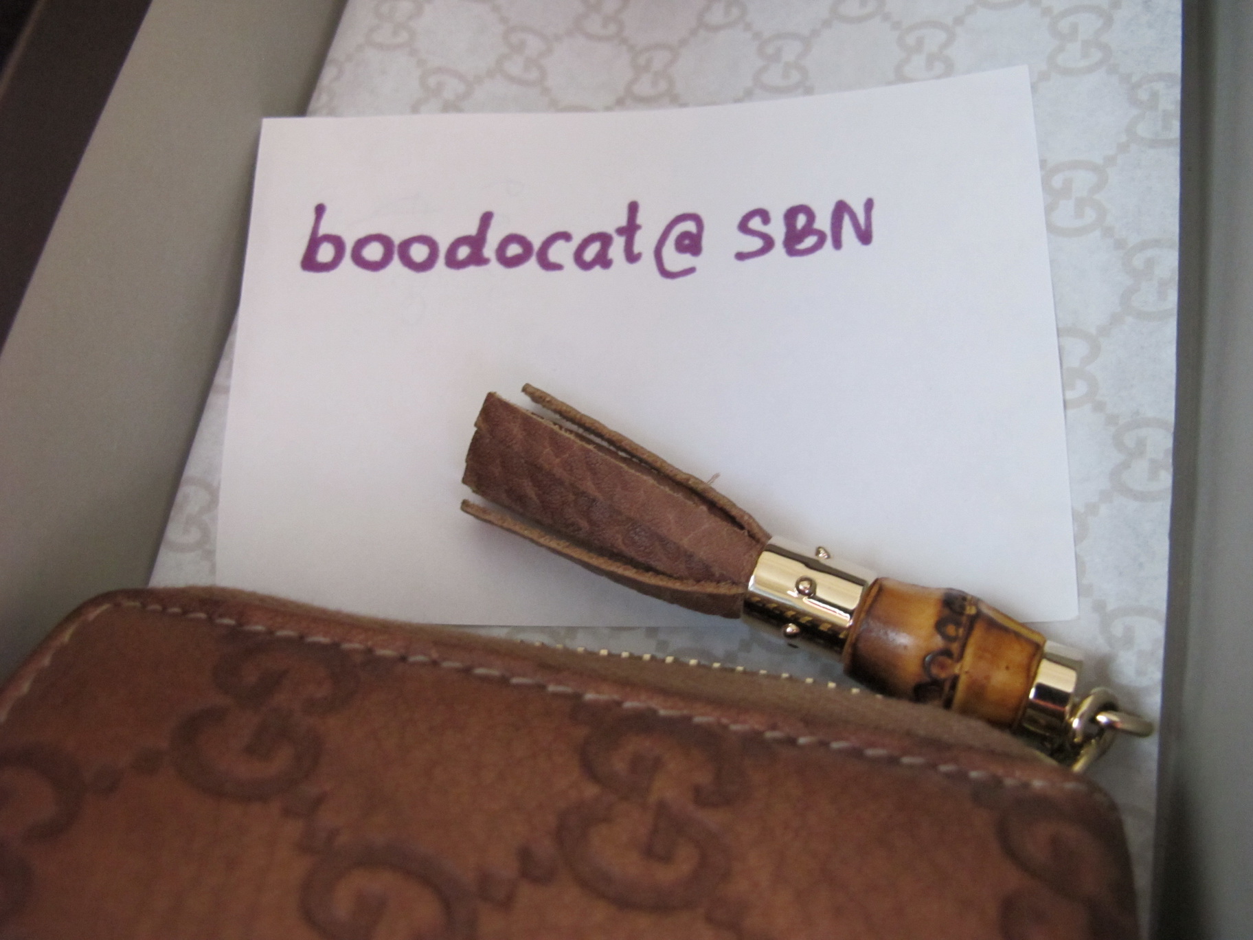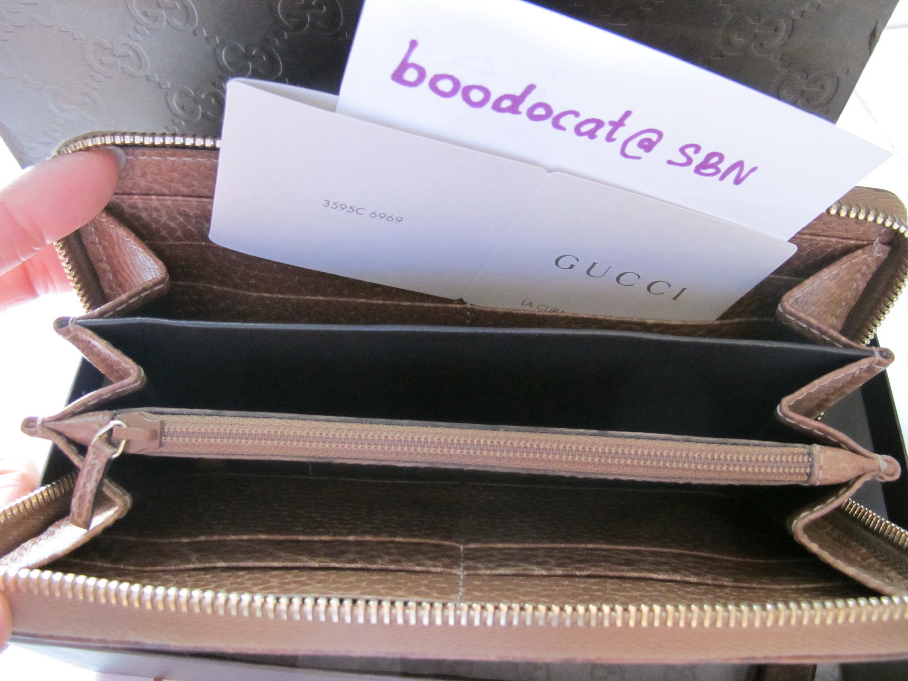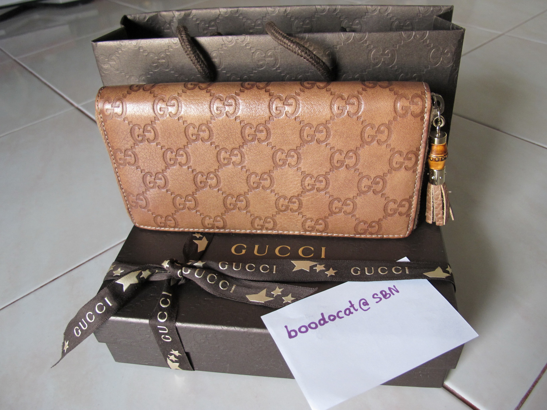 Gucci Zip Wallet with bamboo detail == 15,600==กระเป๋าสตางค์หนังใบยาวปั้มลายโลโก้ Gucci แบบซิป หางซิบเป็นพู่ห้อยไม้ไผ่
