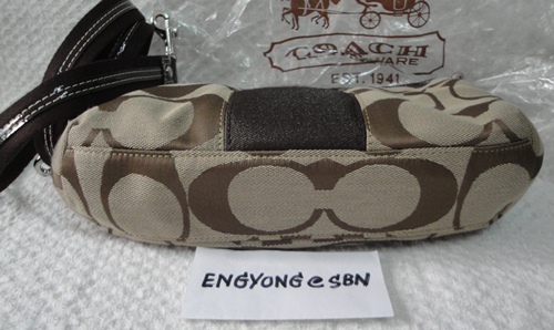2. COACH - 40895 Bleeker Signature Wristlet สี Khaki/Coal (สีกากี/ดำถ่าน) ขนาด 7*4.5*1.5 นิ้ว เป็นอีกรุ่นที่หายากคะ อุปกรณ์มี น้องเป๋า และ Care Card ราคา 2,890 บาท