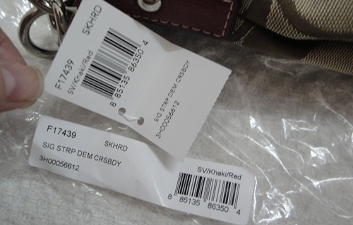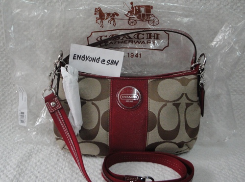 5. COACH - 17439 Signature Stripe Cross Body Bag สี กากี/แดง (Khaki/Red) ขนาด 11*7*4 นิ้ว กระเป๋ารุ่นนี้เป็นที่รู้จักกันดีไม่ต้องบรรยายสรรพคุณ ใช้ได้ 2 แบบ ทั้งถือ/คล้องแขน หรือจะสะพาย (มีสายยาวมาด้วย) อุปกรณ์มี น้องเป๋า /Care Card/Receipt (Copy) และ Plastic Bag จาก Coach ราคาพิเศษ 4,390 บาท