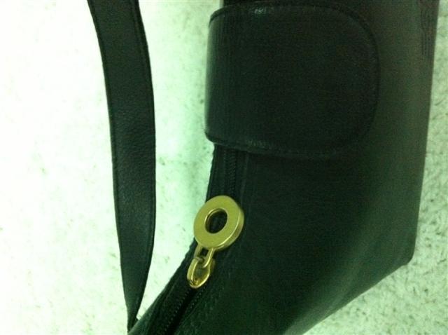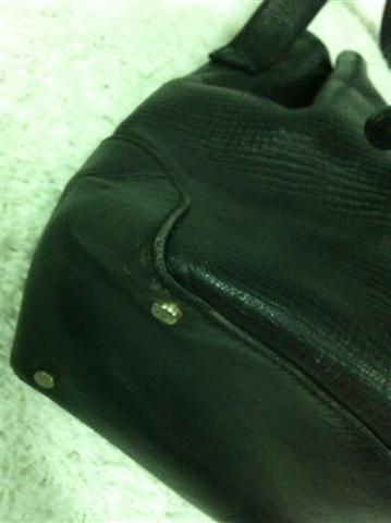 Pierre cardin หนังแท้สีดำ สะพายได้สองแบบ คือสายสั้น กับยาว สภาพใช้งานมาแล้วบ้าง มีมุมด้านซ้ายถลอกเล็กน้อย ด้านหลังกระเป๋ามีรอยเล็บ แต่เวลาสะพายไม่เห็น อะไหล่ทองมีถลอกบ้าง โดยรวมยังสวยอยู่มากค่ะ หนังแท้ส่งต่อเพียง 790 บาทค่ะ
