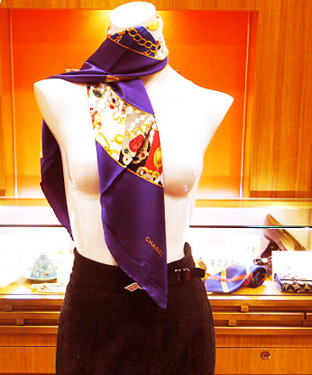 USED LIKE NEW CHANEL SCARF 90X90 CM สีม่วง ราคา 5,900 บาท