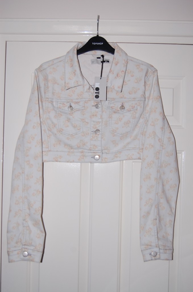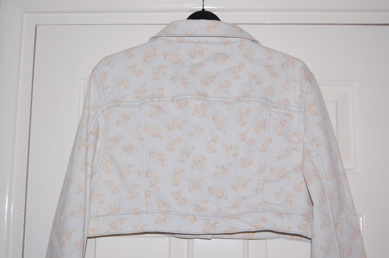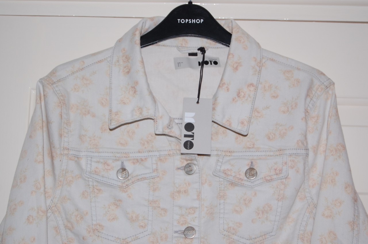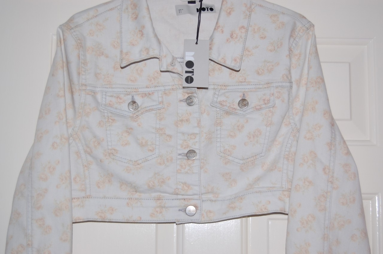 TOPSHOP MOTO FLORAL DENIM CROP JACKET UK8 £45