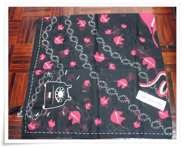 ผ้าพันคอสีดำลาย kiss สีแดง รูปสีจืดกว่าของจริงนิดหน่อย