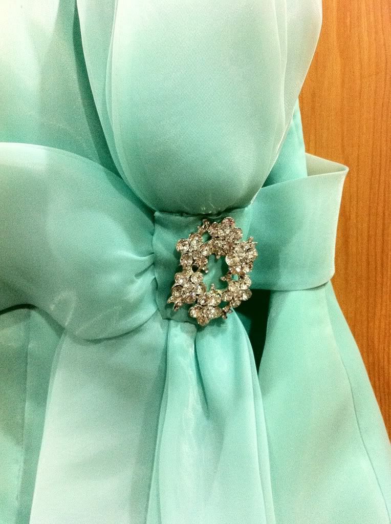 Used Dress kloset เลื่อมรูปโบว์ size M ประดับ crystal ที่หน้าอกและไหล่ 2 ข้าง ได้มาจากในนี้ ไม่ได้ใส่สักครั้งเช่นกัน ขอขายที่ 3000บาท