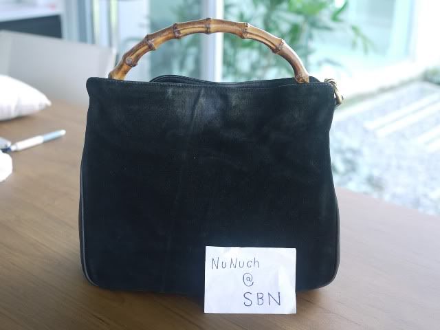 กระเป๋าหนังกลับสีดำ หูไม้ไผ่ สัญลักษณ์ของ Gucci...สภาพใช้งานค่ะ ขายราคาถูกมากที่ 4,500 บาทค่ะ >>> SALE 4,000 บาท...สนใจติดต่อมานะคะ