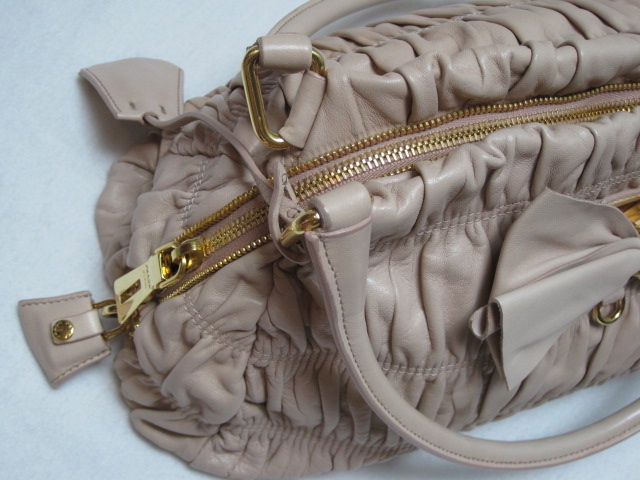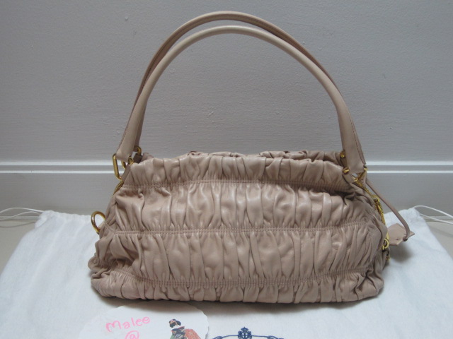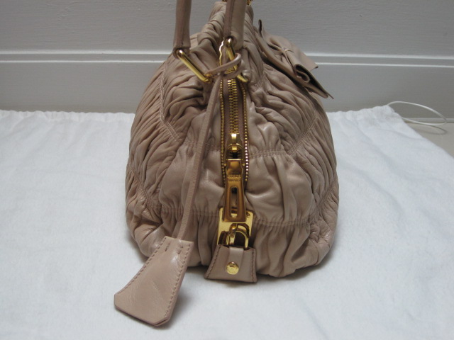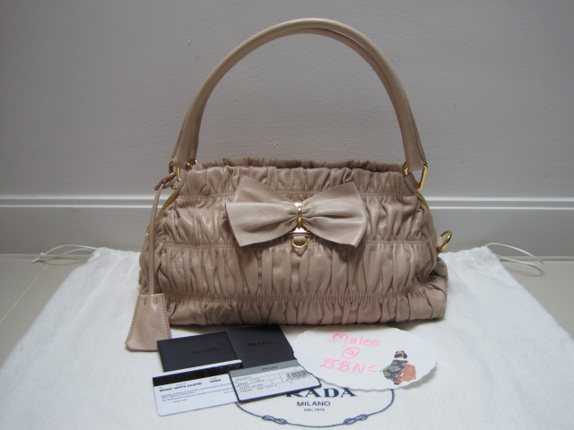 [size=+3]PRADA BAULETTO NAPPA GAUFRE Lambskin Size 15" X 7" X 5.5" สภาพสวยและใหม่มากๆค่ะ แทบจะไม่มีรอยใดๆ หนังลูกแกะนุ่มมือ น้ำหนักเบา จุของได้มากมาย มีซิปปิดมิดชิด ใช้ง่ายและเข้ากับเสื้อผ้าง่ายค่ะ สีเบจอมชมพูสวยมากมาย มีพร้อม การ์ด ถุงผ้า care card แม่กุญแจ+ลูกกุญแจ 2 ดอก ขาย 34,000
