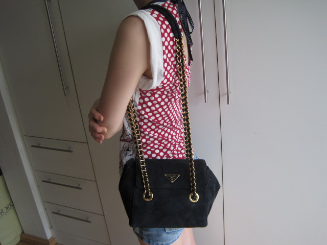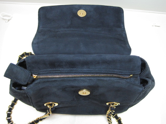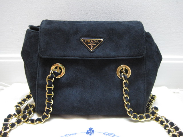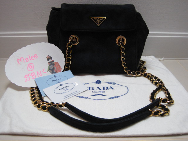 [size=+3]PRADA CAMOSCIO SUEDE Size 10.5" X 7" X 3" สภาพดีมากค่ะ ใช้น้อย กระเป๋าเป็นหนังกลับสีน้ำเงินเข้มสวย โซ่ทองอร่าม ขนาดกำลังดีไม่เล็กเกินไป ไม่มีรอยถลอกและหนังที่ตัวกระเป๋าก็ไม่เยินใดๆเลยค่ะ ใช้ง่ายเข้ากับเสื้อผ้าได้ทุกชุด ใช้ได้ทุกวันหรือไปงานก็ได้ มีพร้อม การ์ด และถุงผ้าค่ะ 11,900