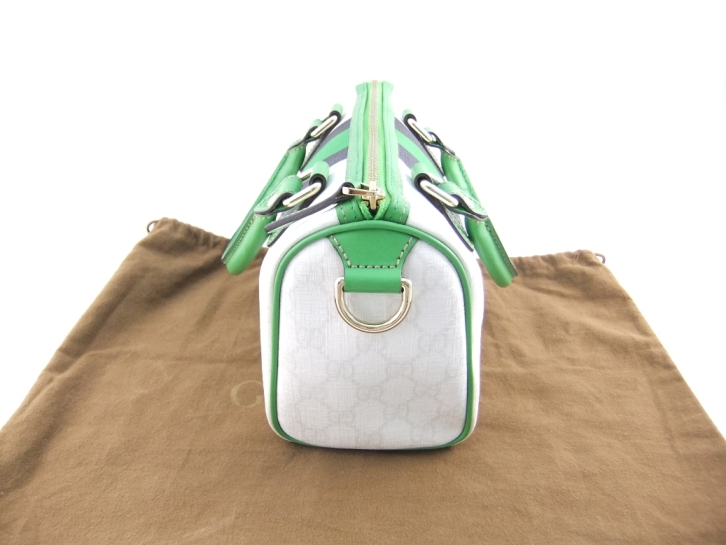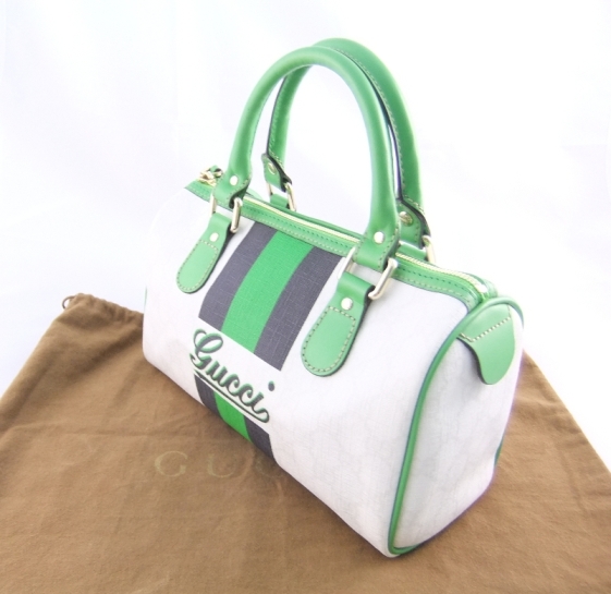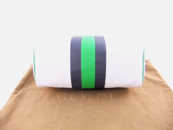 GUCCI VINTAGE WEB BOSTON BAG WHITE LEATHER WITH BLUE/RED/BLUE SIGNATURE WEP . AND SHOULDER STRAP 22000 SIZE 13" สภาพดีมากไมามีตำหนิคะจะได้เยอะ ราคาช้อบ 1350$ นะคะ