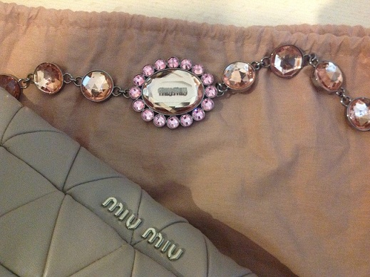 (Used like NEW) MIU MIU Crystal Strap shoulder bag ใบนี้ใหม่มากมากเพราะใช้เเค่ครั้งเดียวค่ะ คริสตัลยังวาววับค่ะ ขาย 27,000 บาทค่ะ