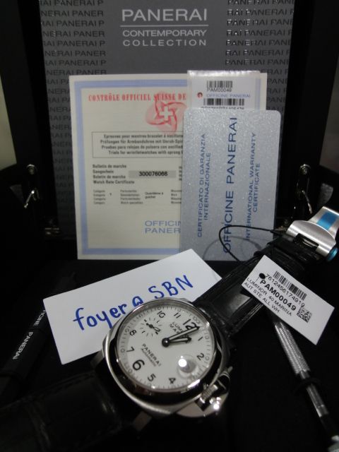 0.นาฬิกา NEW PANERAI PAM 49 S.O WHITE DIAL 40 MM. นาฬิกาเป็นของใหม่ ซี่รี่ย์ปีล่าสุด 2012 ผลิตเพียงปีละ 500 เรือนทั่วโลกเท่านั้น หายากมากๆ ด้วยตัวเรือนสุดสวย หน้าขาว 2 เข็มครึ่ง พร้อมวันที่ ระบบ AUTO ไม่ต้องมาคอยไขลาน พร้อมสายหนังจระเข้สีดำ และเป็นรุ่นใหม่กดปุ่มเปลี่ยนสายแล้ว จึงเป็นที่นิยมของสาวๆทั่วโลกที่ต้องการ PAM 49 หน้าขาวสุดน่ารักมากๆ จึงขอเสนอขายราคาพิเศษเพียง 240,000 บาทเท่านั้น ขายไป 1 เรือนแล้วนะครับให้พี่ก้างสุดหล่อและครอบครัว เหลืออีกเพียง 1 เรือนสุดท้ายแล้วนะครับ สนใจติดต่อได้เลยนะครับ ( ต้องรีบหน่อยนะครับ )