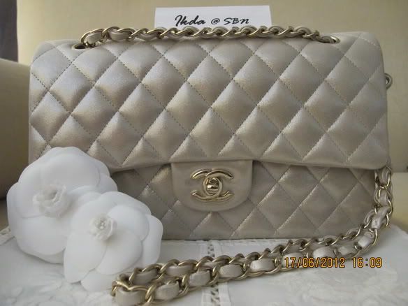 1.NEW CHANEL MEDIUM CLASSIC SILVER LAMB SKIN GHW