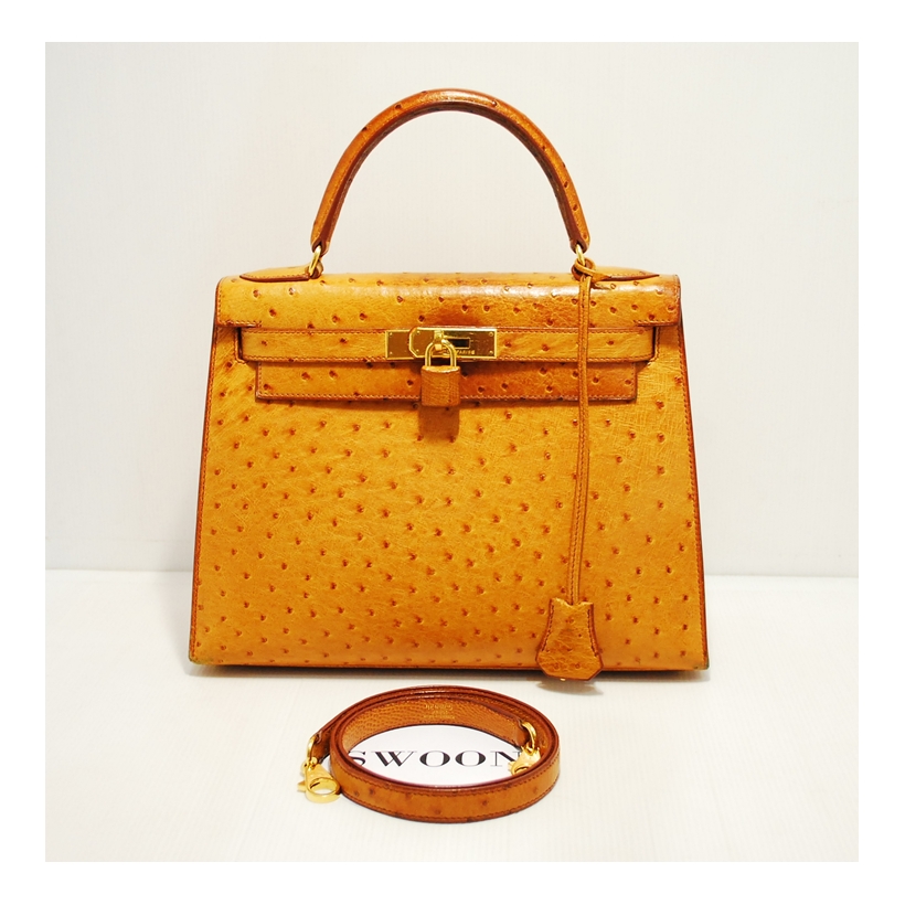 Hermes Kelly Ostrich Gold 28 Stamp A(square)