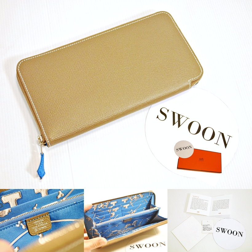 Hermes Silk in Wallet Epsom Etoupe/Mykonos