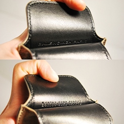 Tri fold, 10 card slots, 5 bill compartments, and 1 zip compartment.