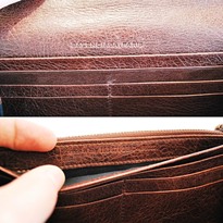Combining two of Hermes's signature materials; leather and silk into a beautiful and roomy continental wallet. Contains 12 card slots, 4 bill compartments, and 1 zip compartment. The silk lining has been specially treated to better resist stain and wear and also accounts for the lightness of the wallet.