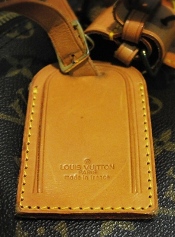The canvas is clean. Leather trim shows overall scratches.