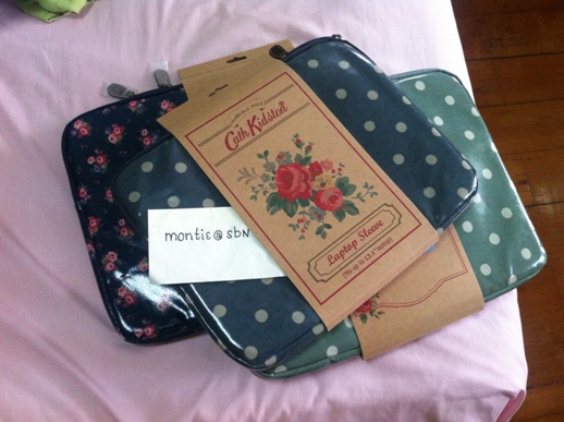 ไซส์ใหญ่(สองใบล่าง) สำหรับ 15" Laptop สีเขียวจุดขาว กับดอกไม้ 1490บาท