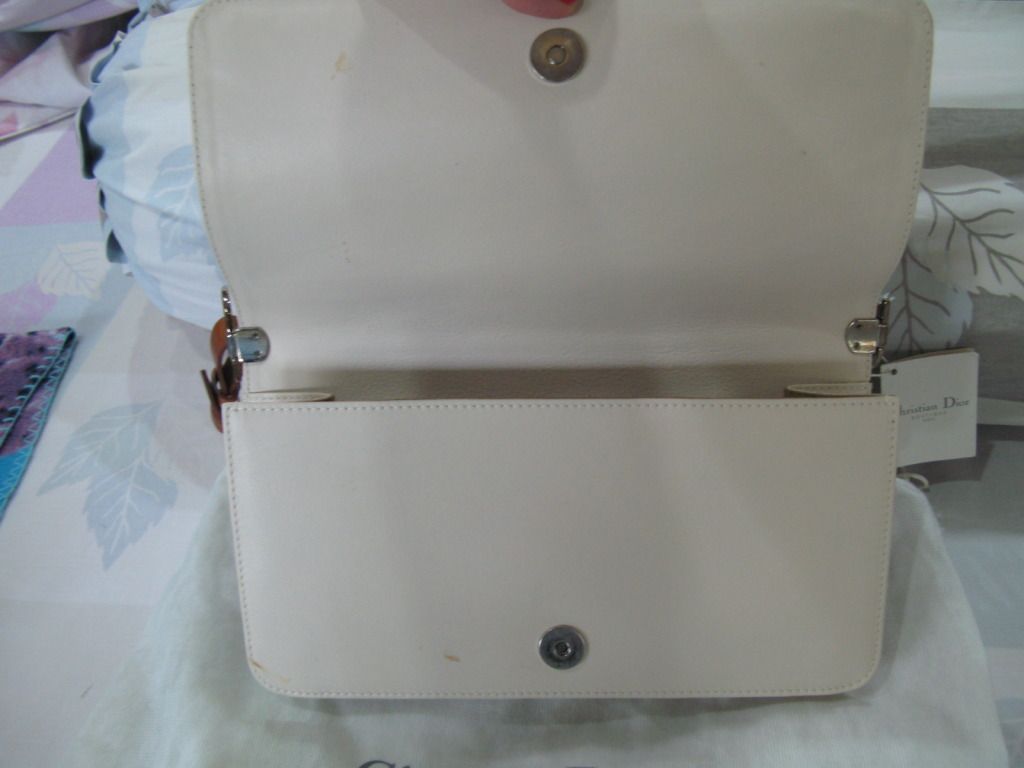 Dior หนังกลับทั้งใบ สภาพดีมากๆไม่เคยใช้คะเก็บอย่างเดียว มีรอยกาวด้านหน้ายาวประมาณ 2ซฒม ไม่น่าเกลียดคะ กลืนกับสีกระเป๋า ขาย 9500>>>>9000