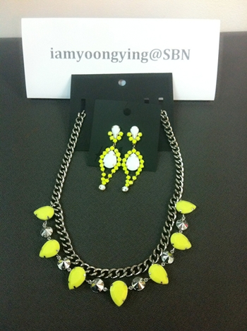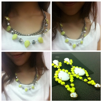 7 ) เซ็ทนี้ฮิตมากค่ะ สีเหลืองเขียวนีออน งามจริงๆค่ะ ดูรูปที่แม่ค้าใส่รีวิวได้ข้างล่างค่ะ สร้อยราคา 750บาท ต่างหูคู่ละ 550บาทคะ