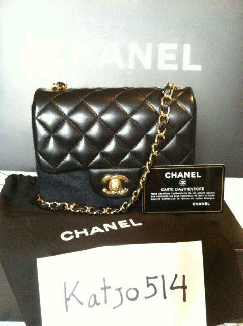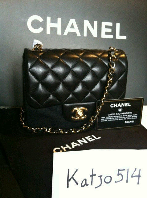 [SIZE=7]CHANEL mini square 7" lamb skin in black colour Gold chain