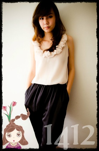 เสื้อเชิ้ตผ้าชีฟองสีครีม มีระบายตรงบ่านิดหน่อยใส่กับเอวสูงน่ารักค่ะ