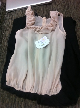 เสื้อสีครีม แต่งเพชรที่ไหล่ ชายบอลลูนนิดๆ size xs ไม่มีป้ายเพราะซักแล้ว