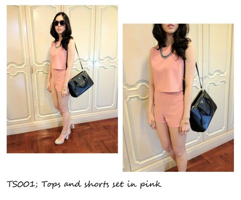 เป็นเสื้อกับกางเกงขาสั้นเข้าชุดสีชมพู เอวกางเกงเปนยางยืดนะคะ