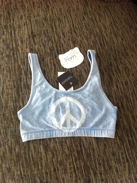 เสื้อ crop ลาย peace size uk10 แต่อันนี้ไม่ใหญ่ไปนะค่ะ คอนเฟิมค่ะ