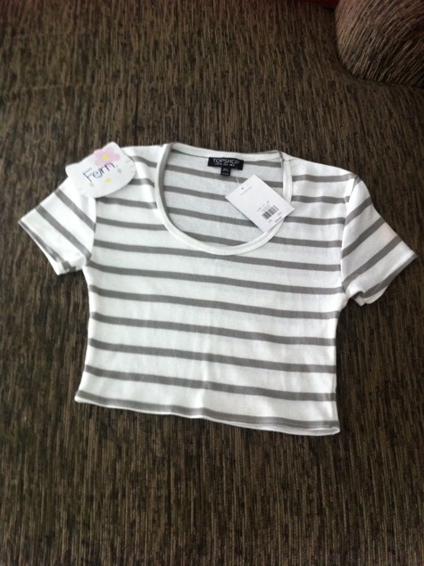 เสื้อยืด crop ลายทาง size uk8 กำลังอินเทรนเลยคะ ใส่กับกางเกงยีนเอวสูงสวยมากกกก
