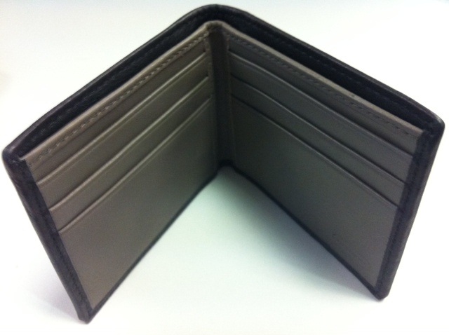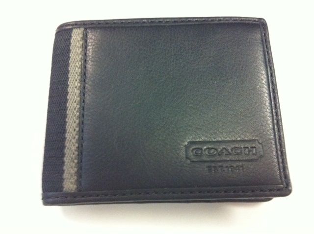 กระเป๋าเงินผู้ชายใหม่ หนังสีดำ ขลิบผ้าตรงสันสีน้ำตาลเข้มกับน้ำตาลอ่อน มีช่องใส่แบงค์ 1 ช่อง ใส่การ์ด 6 ช่อง ราคา 3,300.-บาท ซื้อวันนี้เหลือ 3,000.-เท่าทุน