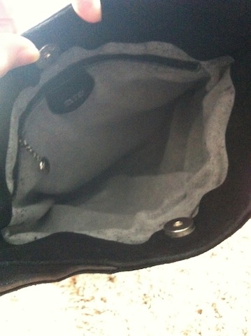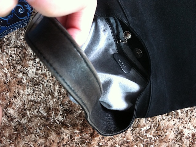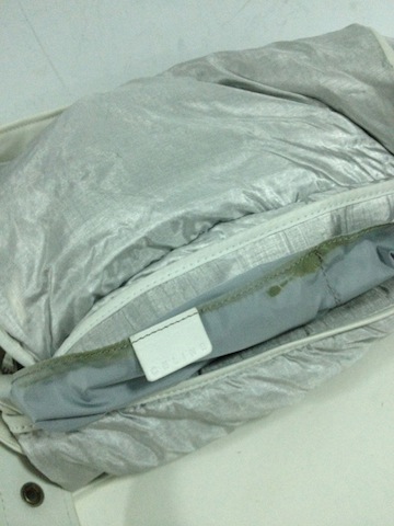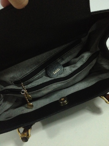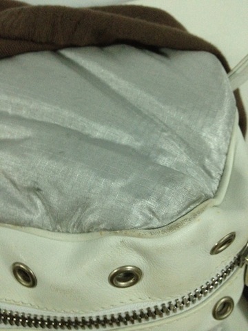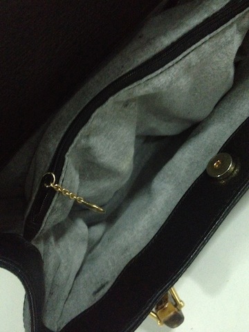 เพราะรุ่นเก่า ด้านในกระเป๋าจะเป็นผ้าเคลือบด้วยหนัง แต่ด้วยกาลเวลาทำให้หนังถลอก