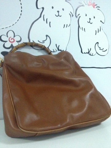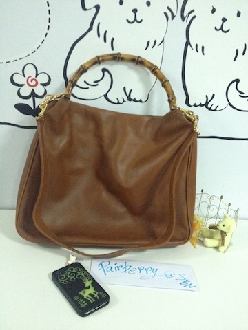 Gucci Bamboo ใบใหญ่ หนังแท้ทั้งใบ สีน้ำตาล สภาพดี มีรอยถลอกบ้างตามขอบ 3900 บาท