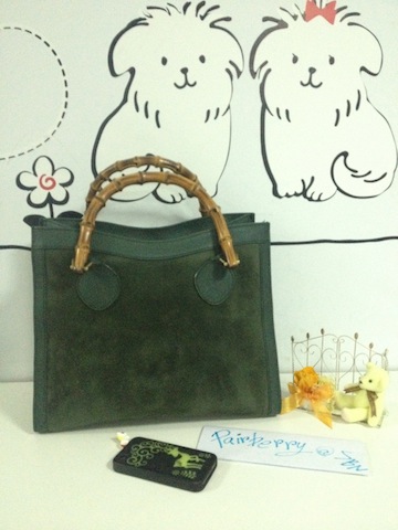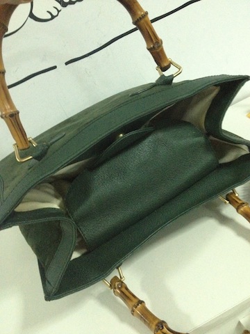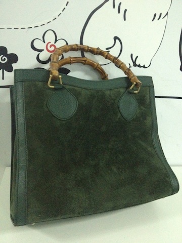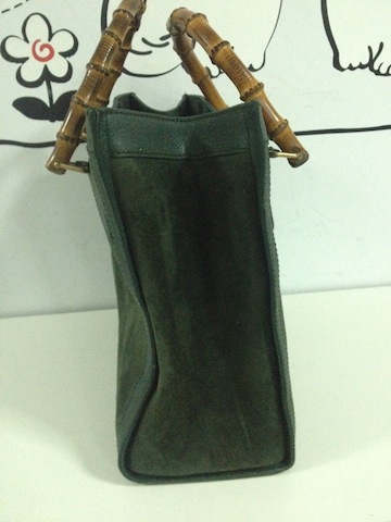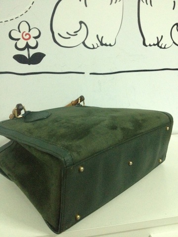 Gucci Bamboo bag กระเป๋าวินเทจ ทำจากหนังแท้ และหนังกลับ ด้านนอก สภาพดี ด้านในผ้าซับในมอมแมม หนังนุ่มบ้างแล้ว แต่ทรงยังเปะ มีร่อยรอยใช้งานบ้าง แต่สภาพยังดีคะ หนังกลับสีเขียวหัวเป็ด ยังฟูฟ่อง ที่เห็นขาวๆ เป็นปกติของหนังที่ลู่ไปมานะคะ ราคา 4000 บาทคะ