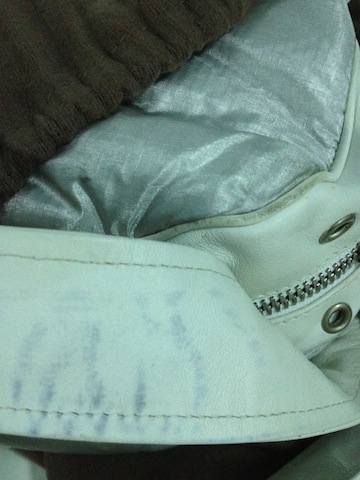 หนังรอบๆ กระเป๋ามีรอยเล็บขนแมวบ้าง ด้านหลังมีรอยถลองบางๆ หนึ่งจุด