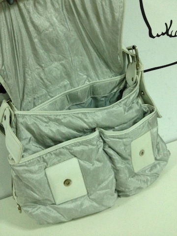 Celine สะพายข้าง มาพร้อมถุงผ้า สภาพดีคะ กระเป๋าทำจากผ้า สีเงินสวย ใช้แล้วเฮงเงินเข้าตลอด
