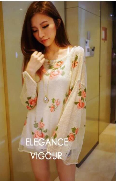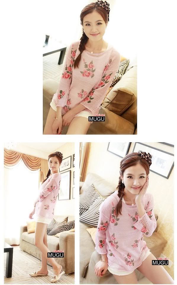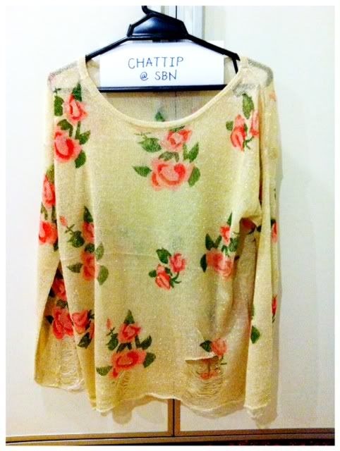 เสื้อไหมพรมกุหลาบ สีครีมทอง Free Size ไม่เคยใส่ ขาย 650 บาท